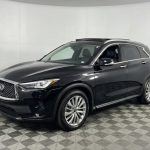 NO HIDDEN FEES! ALL RECONDITIONING COSTS ARE FULLY INCLUDED IN OUR PRICES. ONE OWNER LEASE RETURN! PANORAMIC ROOF, LEATHER, 19″ WHEELS, BLIND SPOT MONITORS AND LANE DEPARTURE WARNING! Black Obsidian 2023 INFINITI QX50 LUXE FWD with a CVT and I4 engine delivers smooth performance and upscale comfort with an efficient 23/29 city highway MPG rating. This refined luxury SUV features an exterior rear parking camera, rear parking sensors, lane departure warning and blind spot monitors for added confidence. Interior highlights include leather-appointed seat trim, heated front seats, a power moonroof and a power liftgate. Additional conveniences include remote keyless entry and steering wheel mounted audio controls, while 19″ silver painted aluminum alloy wheels complete the sophisticated look of this recent arrival INFINITI QX50 LUXE.